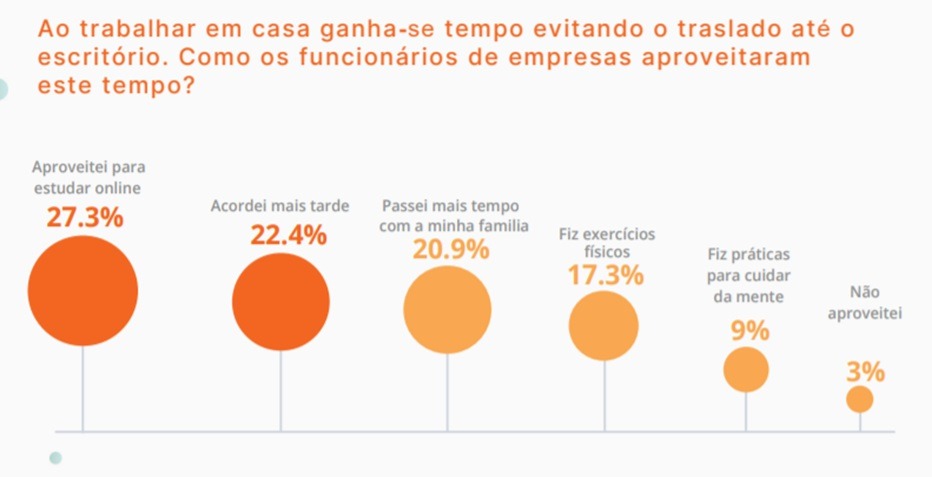 Só o tempo economizado no traslado até o escritório possibilitou que esses profissionais se dedicassem mais aos estudos, e cuidassem mais da saúde, como podemos ver no gráfico abaixo: