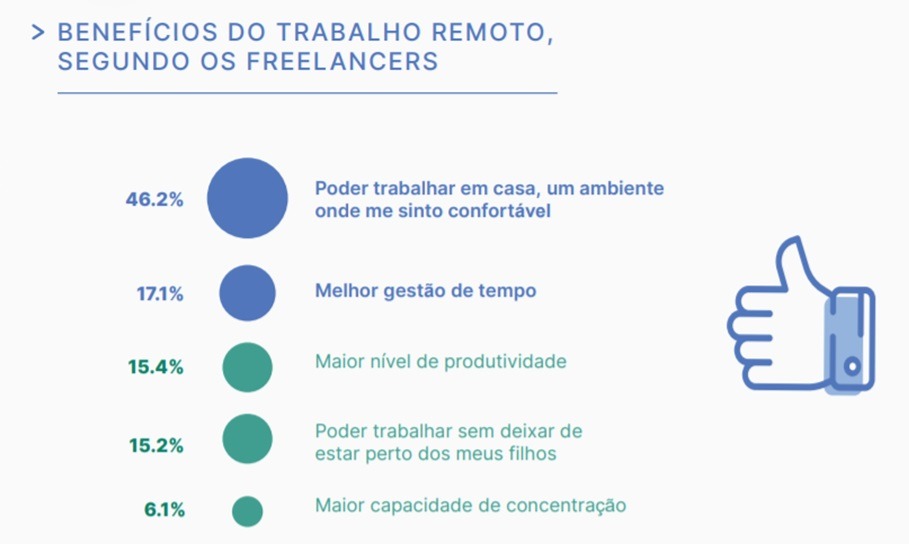 • Fica mais fácil chegar a um equilíbrio entre a vida profissional e pessoal, pelo menos foi isso que 24,6% mencionaram como principal vantagem;