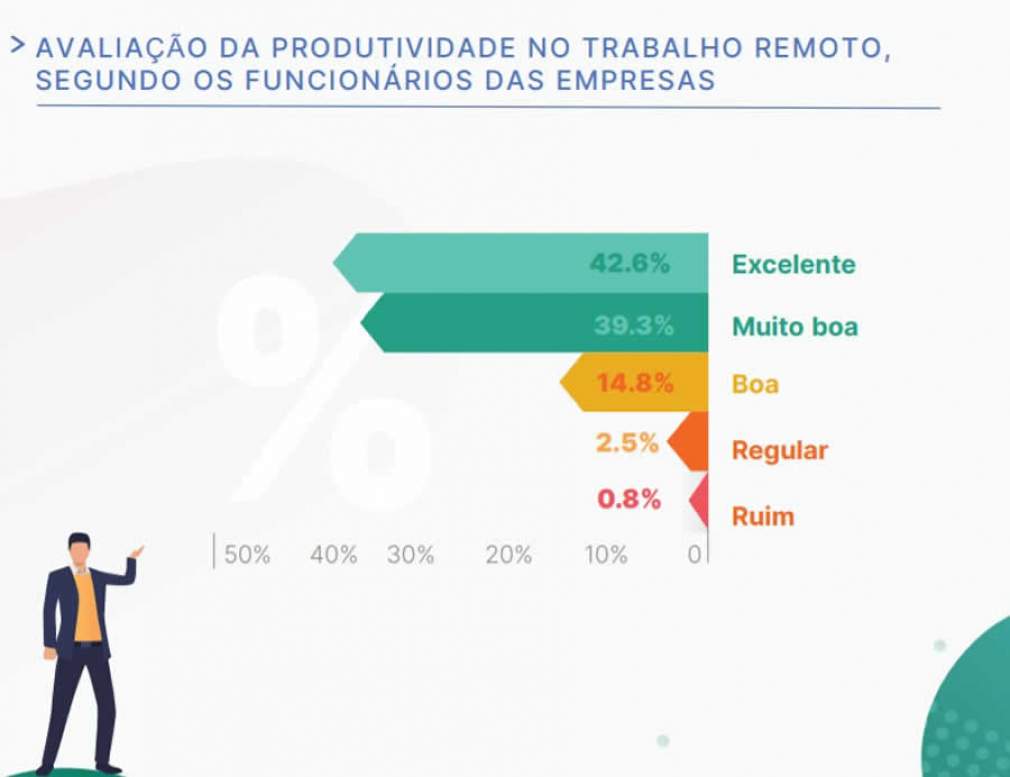 • E para 4,1% dos funcionários de empresas, a satisfação que sentem no trabalho à distância é a principal vantagem desse modelo de trabalho.
