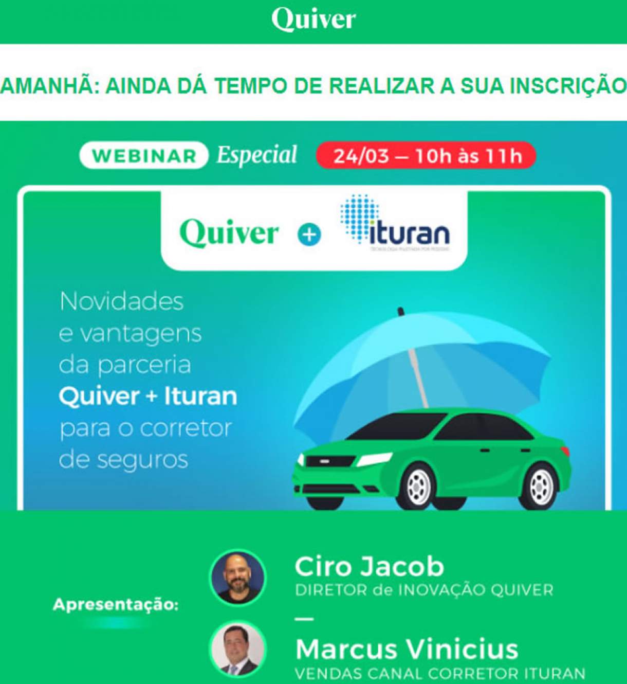 Venha conferir neste webinar especial todas as novidades do Quiver MULT integradas à Ituran e ficar por dentro de todas as vantagens e benefícios desta parceria para os seus clientes e também suas comissões!