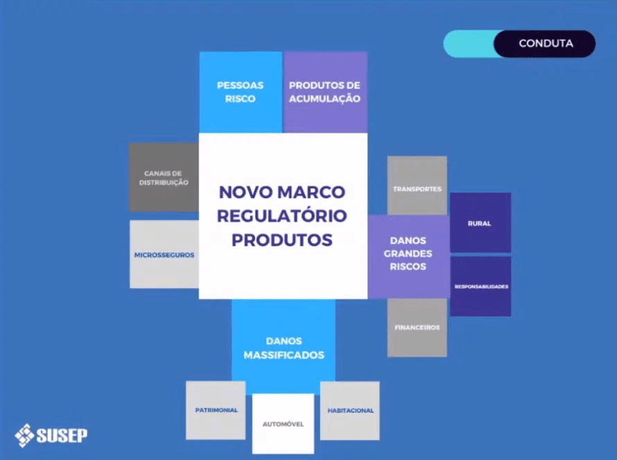 Durante sua palestra, Scherre esclareceu que, neste primeiro momento, o setor acompanha as atualizações do segmento de Seguros de Danos Massificados o qual, dentre outros, compreende os ramos patrimonial, habitacional e de automóvel, mas novas entregas virão, como está demonstrado no mapa da Susep.