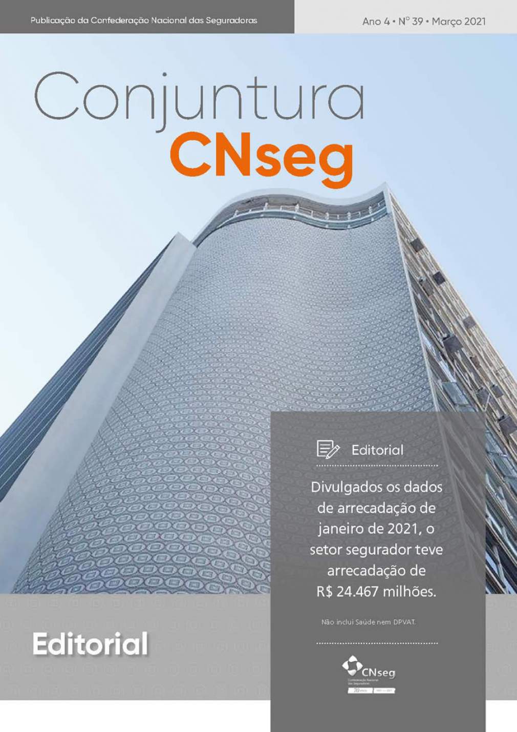 De acordo com o editorial que integra a edição 39 da Conjuntura CNseg, publicação da Confederação Nacional das Seguradoras - CNseg, o setor arrecadou R$ 24,4 bilhões em prêmios em janeiro último. Na comparação com o mesmo mês de 2020, a métrica mais adequada de aferir a tendência, o setor apresentou evolução de 3,6% em janeiro de 2021. Foi um crescimento importante, porque se deu sobre uma base alta, já que em janeiro de 2020 o crescimento foi de 17,6, em relação ao mesmo mês do ano anterior. “O primeiro trimestre deste ano sozinho não será capaz de indicar a capacidade de recuperação setorial. Os efeitos econômicos e de expectativas da PEC Emergencial serão decisivos”, ressalta Marcio Coriolano em seu editorial.