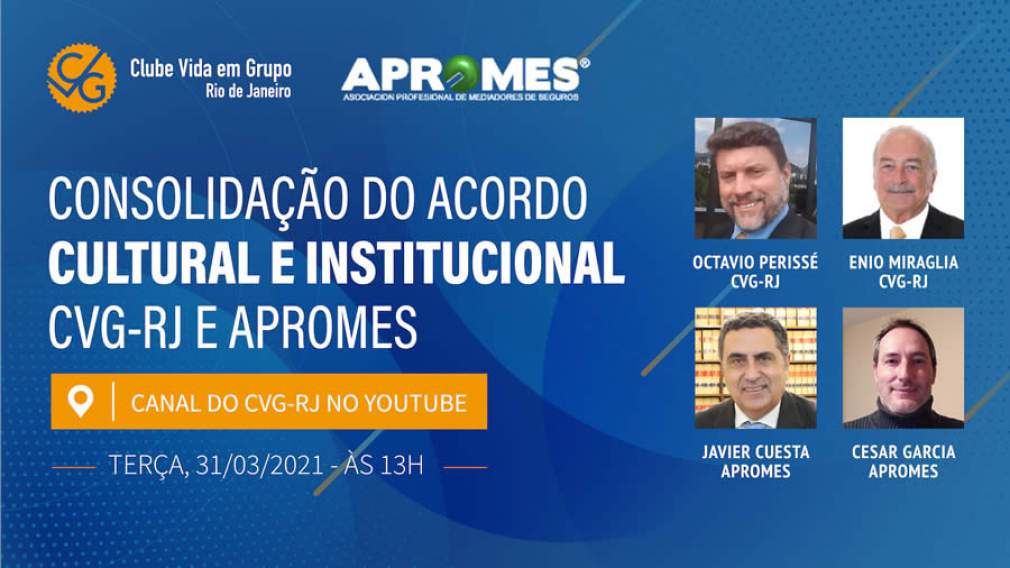 O anúncio foi feito em reunião virtual realizada em 17 de março com o presidente da Associação Profissional de Mediadores de Seguros - APROMES, Javier García Bernal, o delegado da APROMES em Portugal, César García, o presidente do Clube de Vida em Grupo de Rio de Janeiro, Octávio Perissé e seu vice-presidente, Enio Miraglia.