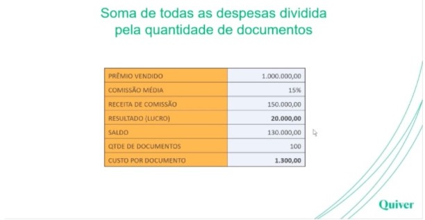 Para aumentar o lucro da corretora é necessário entender primeiro quais são os custos. Na primeira etapa, calcule o valor da venda. Some todas as despesas mensais da corretora, o resultado deve ser dividido pelo número de documentos (apólice, endosso, fatura).
