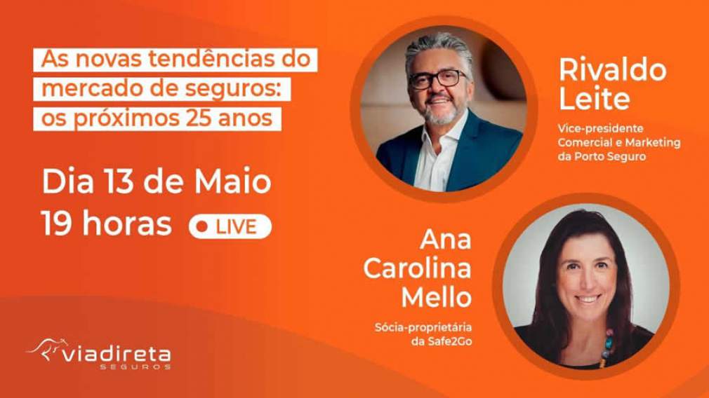 A Via Direta Corretora de Seguros realiza uma transmissão online, que acontece no dia 13 de maio, às 19 horas, com o tema “As novas tendências do mercado de seguros: Os próximos 25 anos”. O evento conta com a presença do Vice Presidente Comercial e Marketing da Porto Seguro, Rivaldo Leite e da Sócia-Fundadora da Safe2Go, Ana Carolina Mello. A live será transmitida no canal do YouTube da Via Direta. Para se inscrever, é só acessar o https://conteudo.viadiretaseguros.com.br/inscricao-webinar e efetuar a inscrição.
