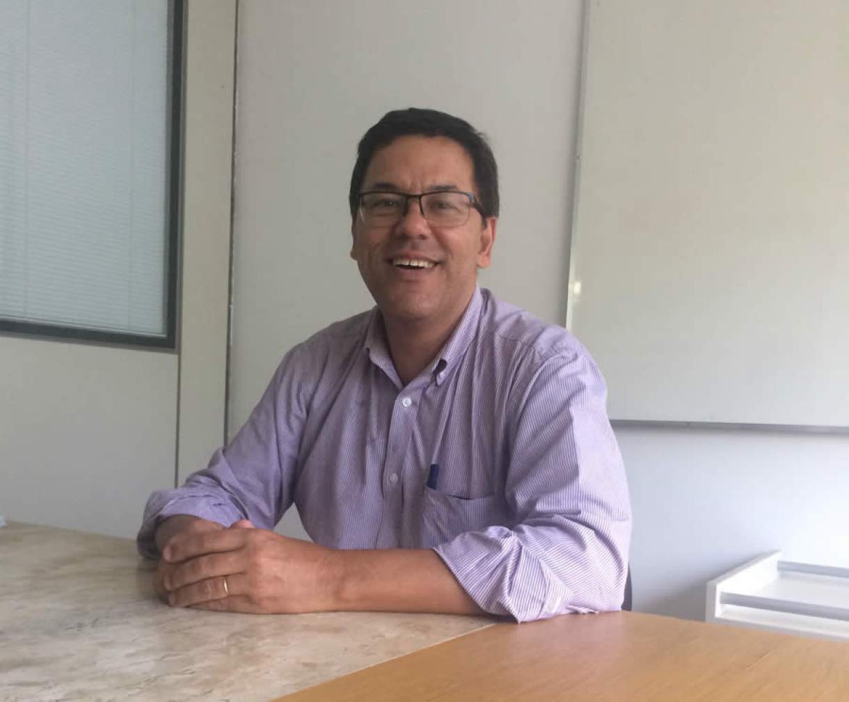 Homem sentado em frente a mesa Descrição gerada automaticamente