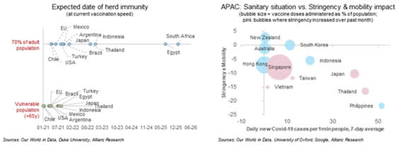 Enquanto países com economia desenvolvida realizam campanhas de imunização, a vacinação insuficiente na Ásia e nos mercados emergentes pode causar caminhos de crescimento dessincronizados. A análise é do time de economistas da seguradora de crédito, Euler Hermes. Segundo o documento divulgado nesta semana, as estratégias governamentais intermitentes para lidar com o aumento de novos casos - embora mais moderadas do que as ondas anteriores - provavelmente continuarão.