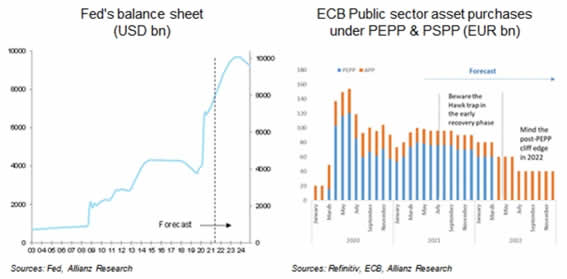 Formulação de políticas: o intervencionismo ainda estará em ação em 2021. Evitar os erros de um aperto fiscal precoce ou desordenado será fundamental para a sustentabilidade da recuperação. O relatório aponta que a China já está empenhada em reduzir seus impulsos monetários/fiscais e outros países podem ser tentados a fazer o mesmo. No entanto, o encerramento prematuro dos mecanismos de assistência poderia, por exemplo, ser o estopim de uma nova onda de insolvências entre as empresas. Trazer perspectivas de longo prazo para o setor corporativo com projetos de infraestrutura e políticas industriais poderia restaurar a confiança e liberar o excesso de caixa no setor privado. No Reino Unido, por exemplo, a eliminação progressiva das medidas de apoio deve durar um ano inteiro.