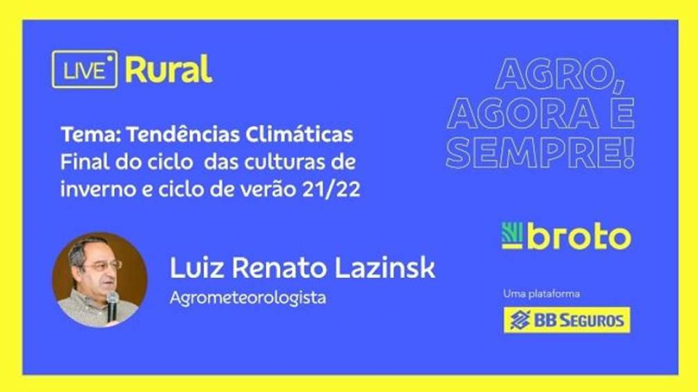 A conversa terá participação de Luiz Renato Lazinski, agrometeorologia que trabalhou 30 anos junto ao Inmet (Instituto Nacional de Meteorologia). Os espectadores poderão tirar suas dúvidas com o convidado ao vivo utilizando o chat disponível na transmissão.