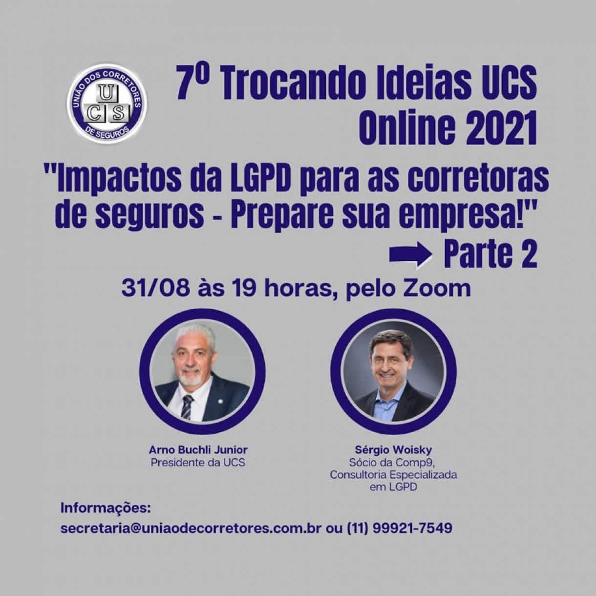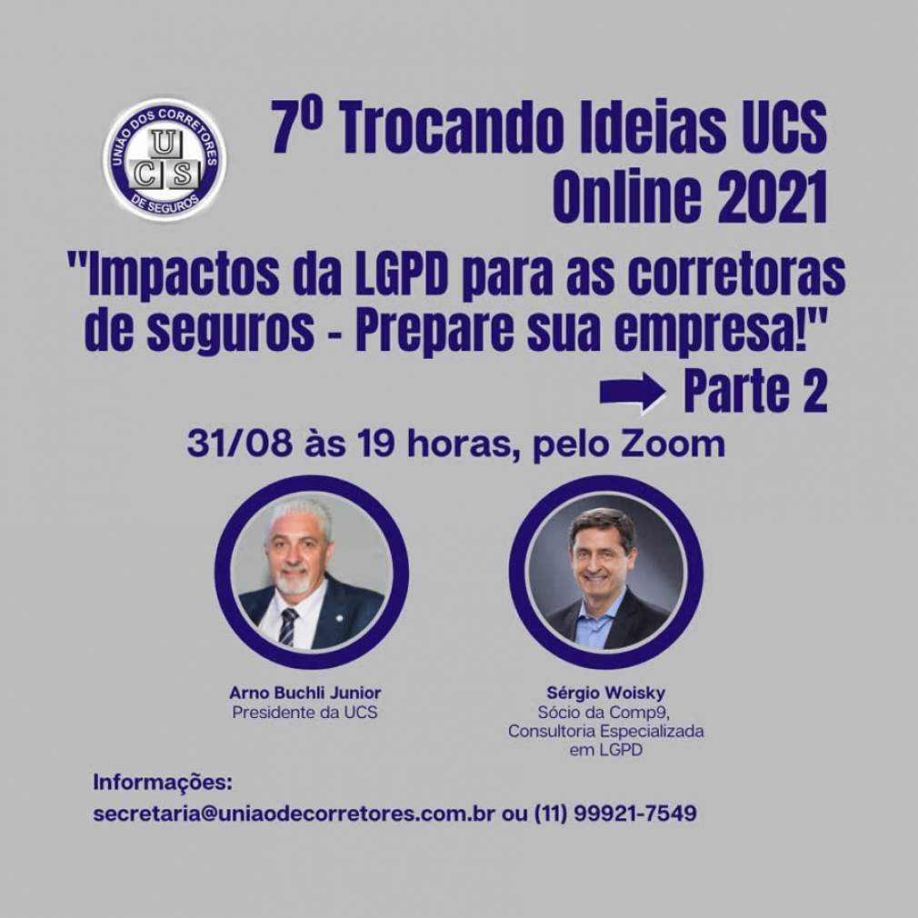 A UCS – União dos Corretores de Seguros – trouxe em seu 7º Trocando Ideias de 2021 (24/08) três especialistas para esclarecer as dúvidas dos corretores de seguros associados em relação à Lei Geral de Proteção de Dados Pessoais (LGPD – Lei nº 13.709/2018).