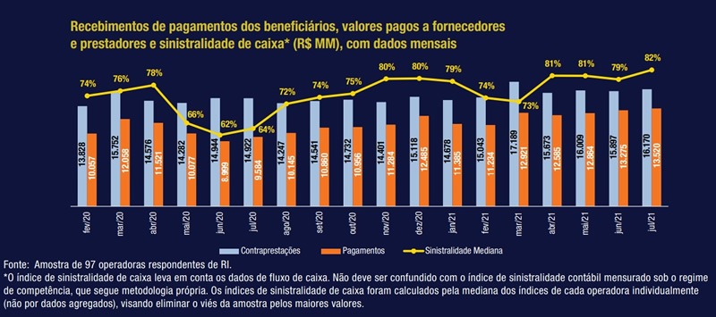 Em julho, despesas para cobrir o atendimento aos beneficiários consumiram 82% das receitas, chegando a R﹩ 13,5 bilhões; média por trimestre iguala período pré-Covid