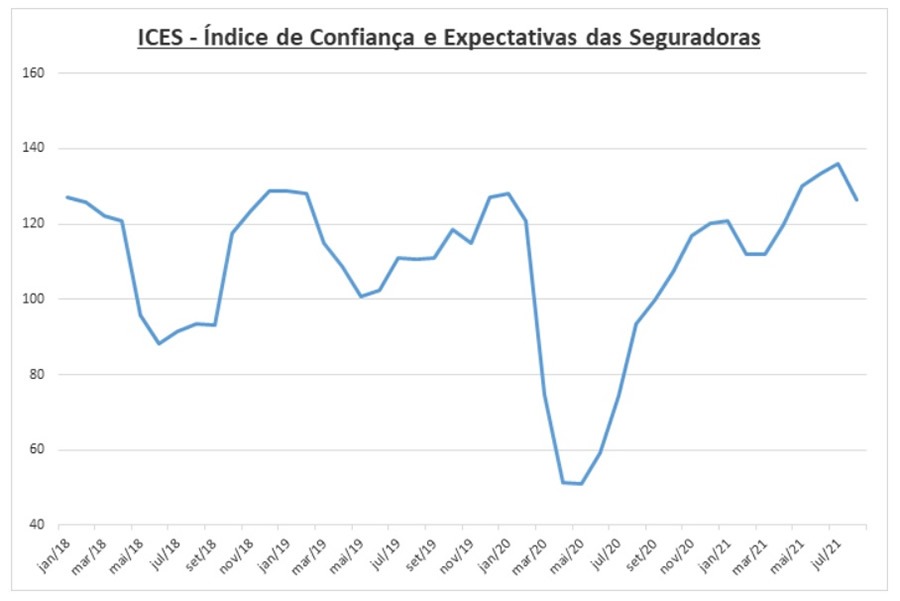 Em agosto, em relação ao mês anterior, o otimismo do setor de seguros continuou, mas a sua intensidade diminuiu.