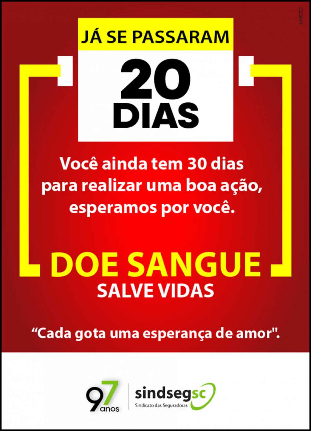 Como lembrete, vale reforçar que com a sua doação você poderá salvar até 4 vidas, e ainda ajuda um asilo da região, porque para cada doação de sangue, o SindsegSC doará uma cesta básica para um lar de idosos da região.