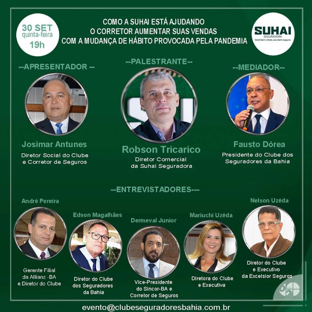 O Clube dos Seguradores da Bahia avança na agenda de transmissões, onde conta com a presença dos principais players do mercado de seguros. No dia 30 de setembro, será a vez do Diretor Comercial da Suhai, Robson Tricarico. A seguradora é líder no mercado de seguros de moto e conhecida pela sua especialização na cobertura de roubo e furto. A Suhai é regularizada e regulamentada pela autarquia e atualmente, possui a 10ª posição no ranking nacional da Susep e está presente em todo o Brasil, com mais de 30 mil corretores cadastrados.
