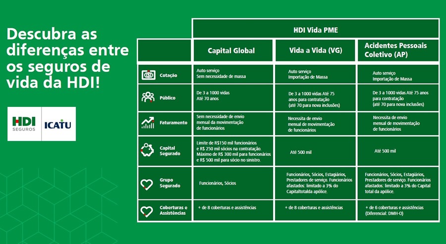 A HDI Seguros, em parceria com a Icatu, anuncia a ampliação do HDI Vida PME, seguro voltado para proteção de sócios e colaboradores no segmento de pequenas e médias empresas. Com a proteção certa para cada perfil corporativo e sem burocracia, a empresa que contratar as opções ofertadas pelo HDI Vida PME irá contar com pacote de coberturas e assistências ainda mais completo, além da possibilidade de segurar mais vidas.
