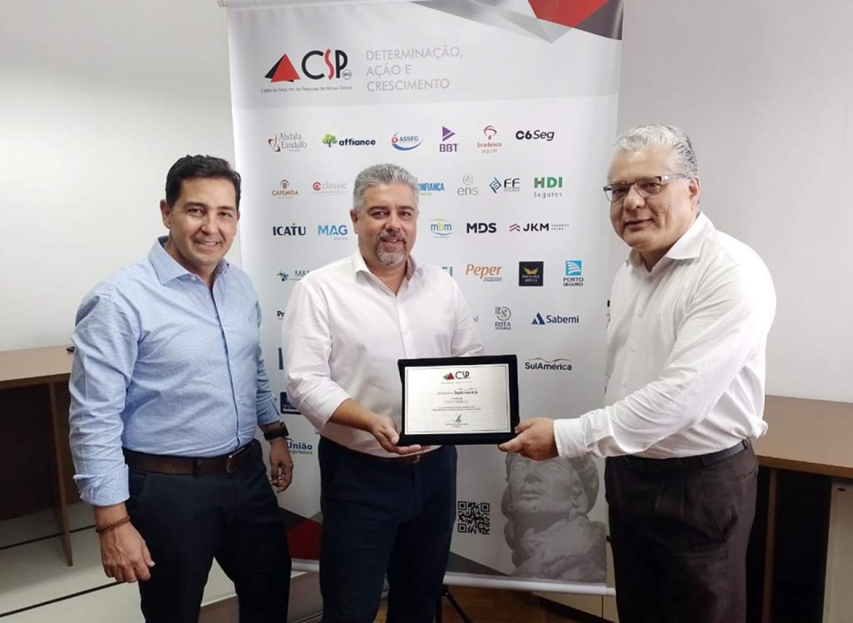 A SulAmérica, representada pelo head comercial, Sérgio Ricardo de Souza Júnior, e pelo superintendente comercial em Minas Gerais, Giuliano Alves Baeta, receberam a placa de boas-vindas e a placa comemorativa pelos 125 anos da companhia, completados no ano passado. Em virtude da pandemia, não foi possível realizar a entrega anteriormente.