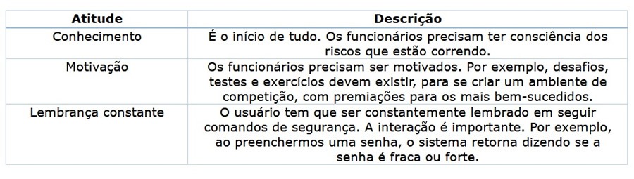 A ideia é que não é suficiente o funcionário ter consciência da existência do risco. É preciso ter uma estratégia de convencimento, em termos psicológicos mesmo. Haveria uma distância entre conhecimento, desejo e comportamento. O funcionário pode saber do problema, mas, se não tiver o estímulo, não irá fazer.