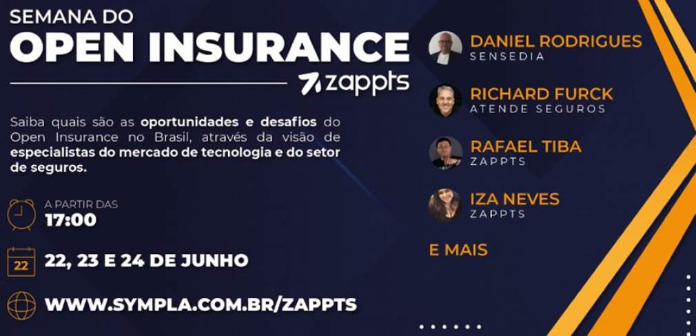 A Zappts, empresa de tecnologia focada em desenvolver soluções digitais para grandes marcas, realiza dos dias 22 a 24 de junho, a semana do Open Insurance. Serão três dias de encontros virtuais e gratuitos com a participação de especialistas do mercado de tecnologia e de seguros.
