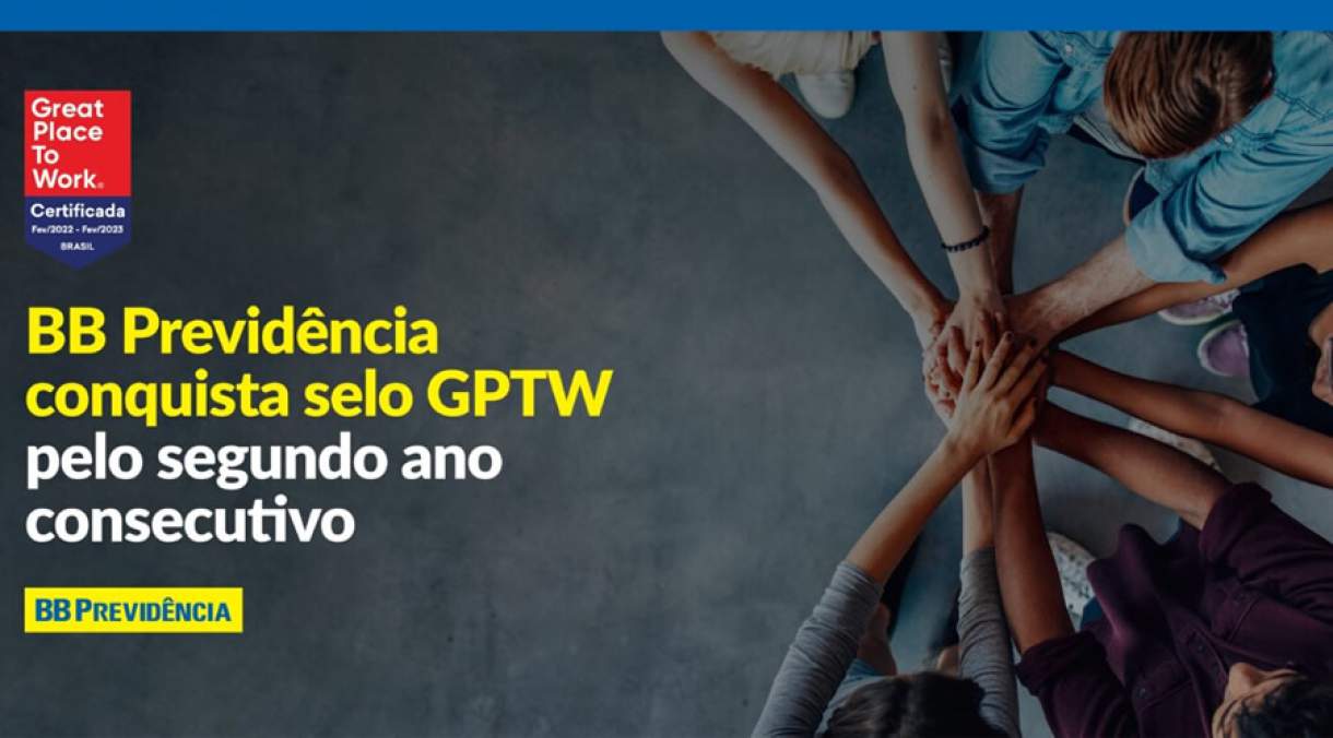 A BB Previdência recebeu, pelo segundo ano consecutivo, o selo Great Place To Work (GPTW), programa internacional de certificação que avalia em todo o mundo as melhores empresas para se trabalhar. Para receber o selo, a Entidade, parte do Conglomerado Banco do Brasil, foi avaliada pelos seus próprios colaboradores, por meio de uma pesquisa qualitativa sobre o ambiente de trabalho.