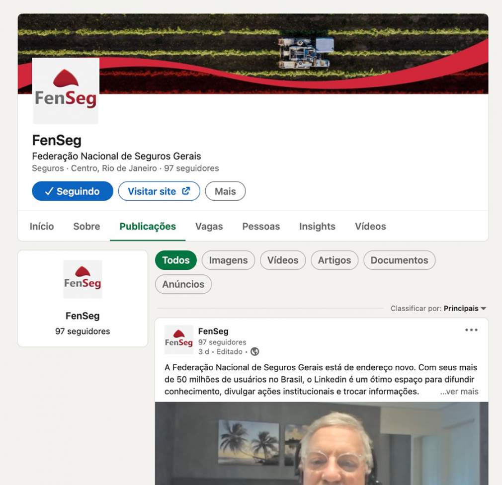 A Federação Nacional de Seguros Gerais (FenSeg) acaba de abrir um novo canal de comunicação com a sociedade. Agora, a organização que representa mais de 90 ramos no segmento de danos e responsabilidade civil também está presente no Linkedin (lLink).