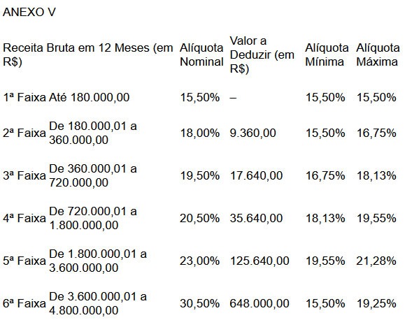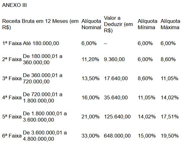 Observemos abaixo a diferença de alíquotas entre os referidos anexos: