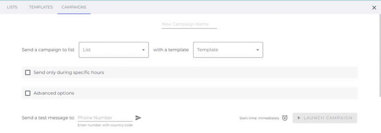 Para dispararar campanha, você deve ir até a guia “Campaigns” e nos dois menus suspensos, selecionar a lista e a campanha desejadas.