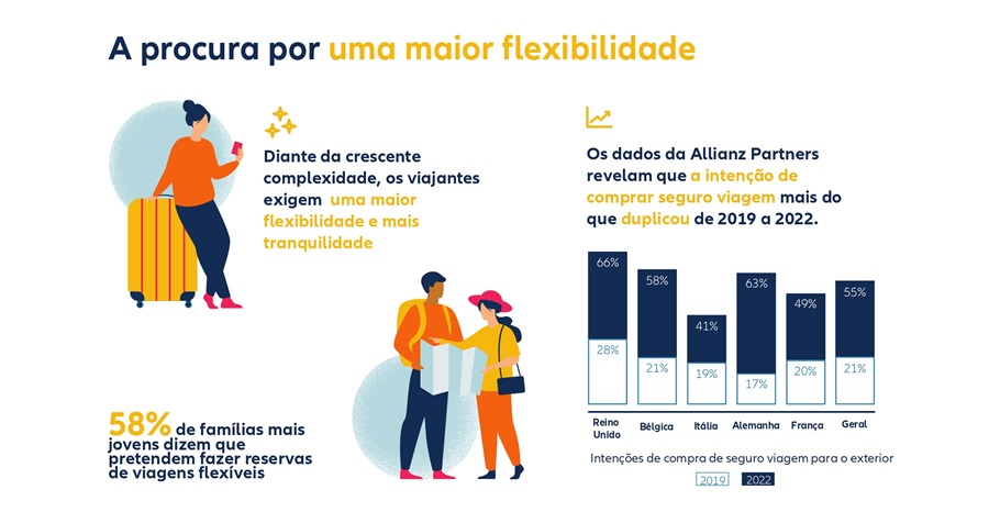 Os dados do Grupo Allianz Partners revelam que a procura viu um aumento substancial nas intenções dos clientes comprarem seguro viagem nos cinco principais mercados europeus (Bélgica, França, Alemanha, Itália e Reino Unido), de 21% em 2019 para 55% em 2022 para viagens internacionais e de 12% para 26% para viagens nacionais. Em linha com a crescente procura, o Grupo Allianz Partners registou o seu maior nível de pedidos de reembolso pós-embarque em 2022.
