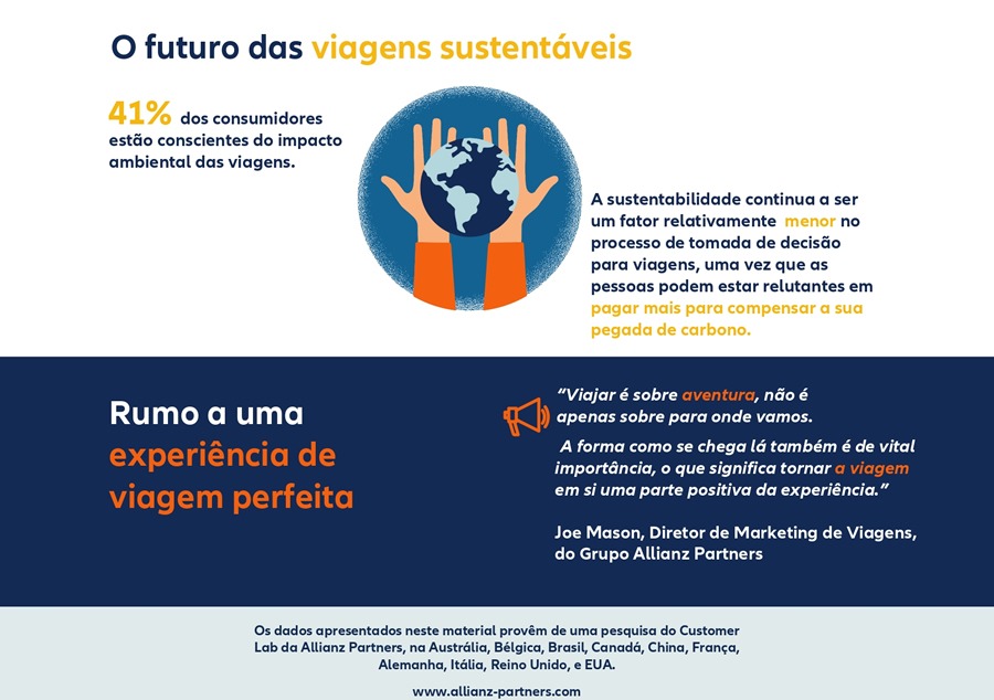 Joe Mason, Diretor de Marketing de Viagens do Grupo Allianz Partners, relata que “o desejo de viajar novamente ficou evidente nas movimentadas salas de embarque e nos resorts lotados em 2022. Mas os efeitos da pandemia nas necessidades e nas expectativas dos viajantes vieram para ficar. O setor de seguros prestará serviços a um consumidor mais exigente e mais bem informado, que tem uma maior consciência do que é um bom serviço e do que pode correr mal. Portanto, há muito mais pressão para enfrentar no setor do turismo. Soluções flexíveis e integradas para cobrir todos os cenários hipotéticos são agora essenciais para a oferta”.