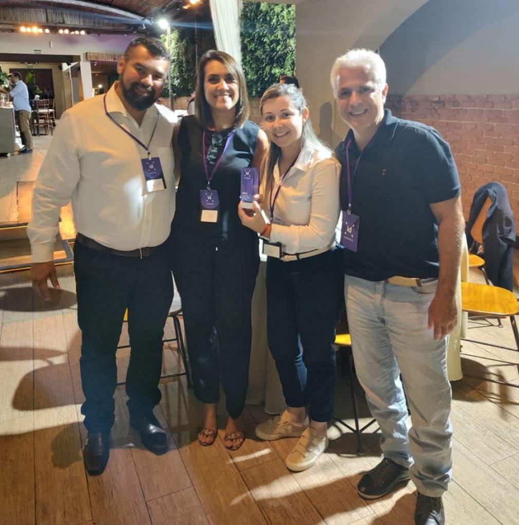 Os coordenadores Wellington Lima, Thaise Tiski e Cintia Moura, além do analista Bruno Soares foram os responsáveis por receber o prêmio em nome do Grupo Segurador. A parceria entre as empresas foi firmada há um ano com o objetivo de transformar a jornada de reembolso de procedimentos médicos na Bradesco Saúde.