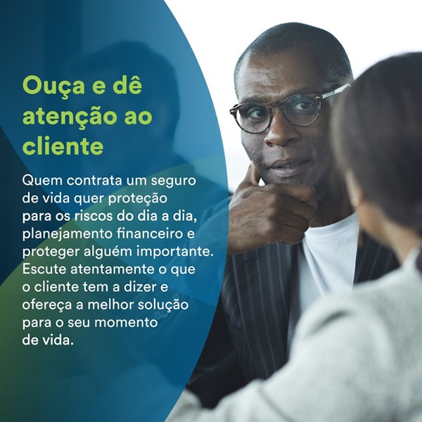 1. Ouça e dê atenção ao cliente | Quem contrata um seguro de vida quer proteção para os riscos do dia a dia, o planejamento financeiro e proteger alguém importante. Escute atentamente o que o cliente tem a dizer e ofereça a melhor solução para o seu momento de vida.