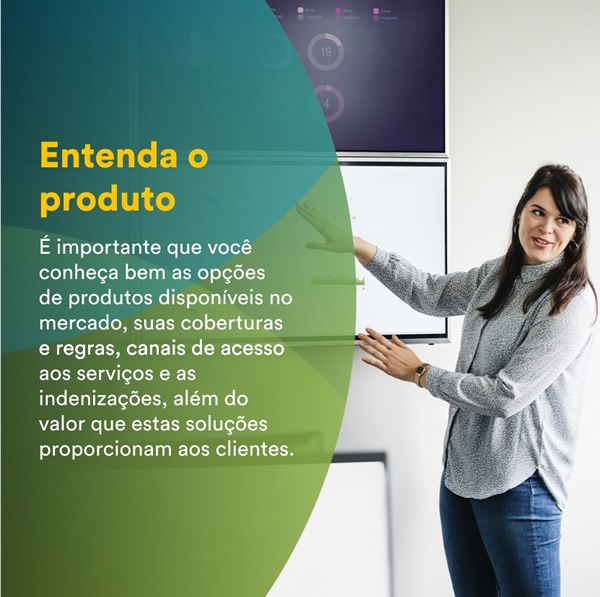 2. Entenda o produto | É importante que você conheça bem as opções de produtos disponíveis no mercado, suas coberturas e regras, canais de acesso aos serviços e as indenizações, além do valor que estas soluções proporcionam aos clientes.