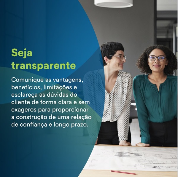 3. Seja transparente |Comunique as vantagens, benefícios, limitações e esclareça as dúvidas do cliente de forma clara e sem exageros para proporcionar a construção de uma relação de confiança e longo prazo.