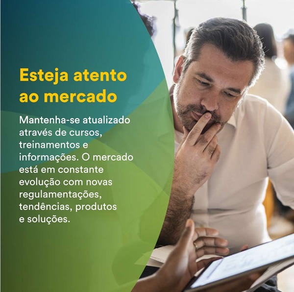 5. Esteja atento ao mercado | Mantenha-se em constante atualização através de cursos, treinamentos e informações. O mercado está em constante evolução com novas tendências, produtos, regulamentações e necessidades dos clientes.