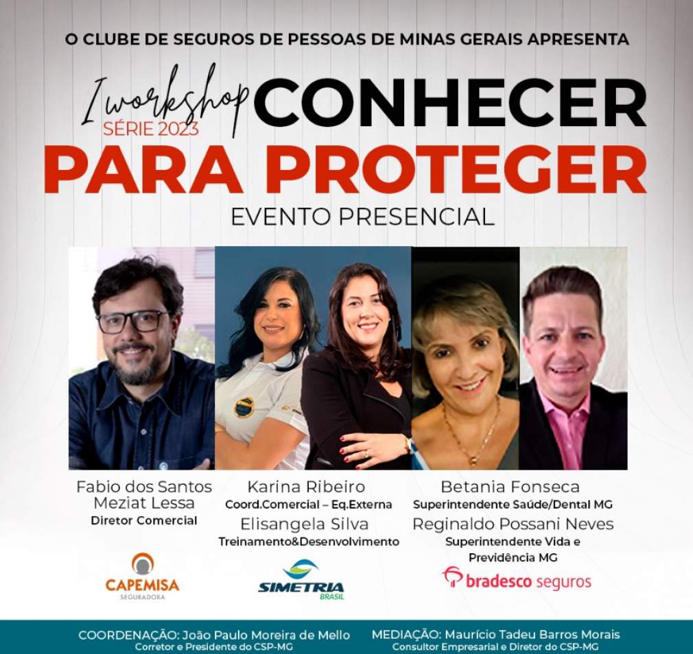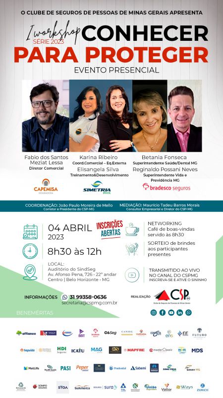 Com o mercado em constante mudança, a busca por conhecimento torna-se essencial para os profissionais atuarem de forma estratégica com foco no sucesso dos negócios. Pensando nisso, o Clube de Seguros de Pessoas de Minas Gerais (CSP-MG) promove a nova temporada da série de workshops “Conhecer para Proteger”. O primeiro evento acontece no dia 4 de abril e recebe as beneméritas Capemisa Seguradora, Simetria Brasil e Bradesco Seguros.