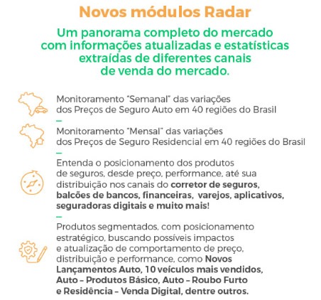 *Segmentos auto, moto, caminhão, residencial, empresarial, vida individual/empresa, viagem, celular, seguros de responsabilidade civil