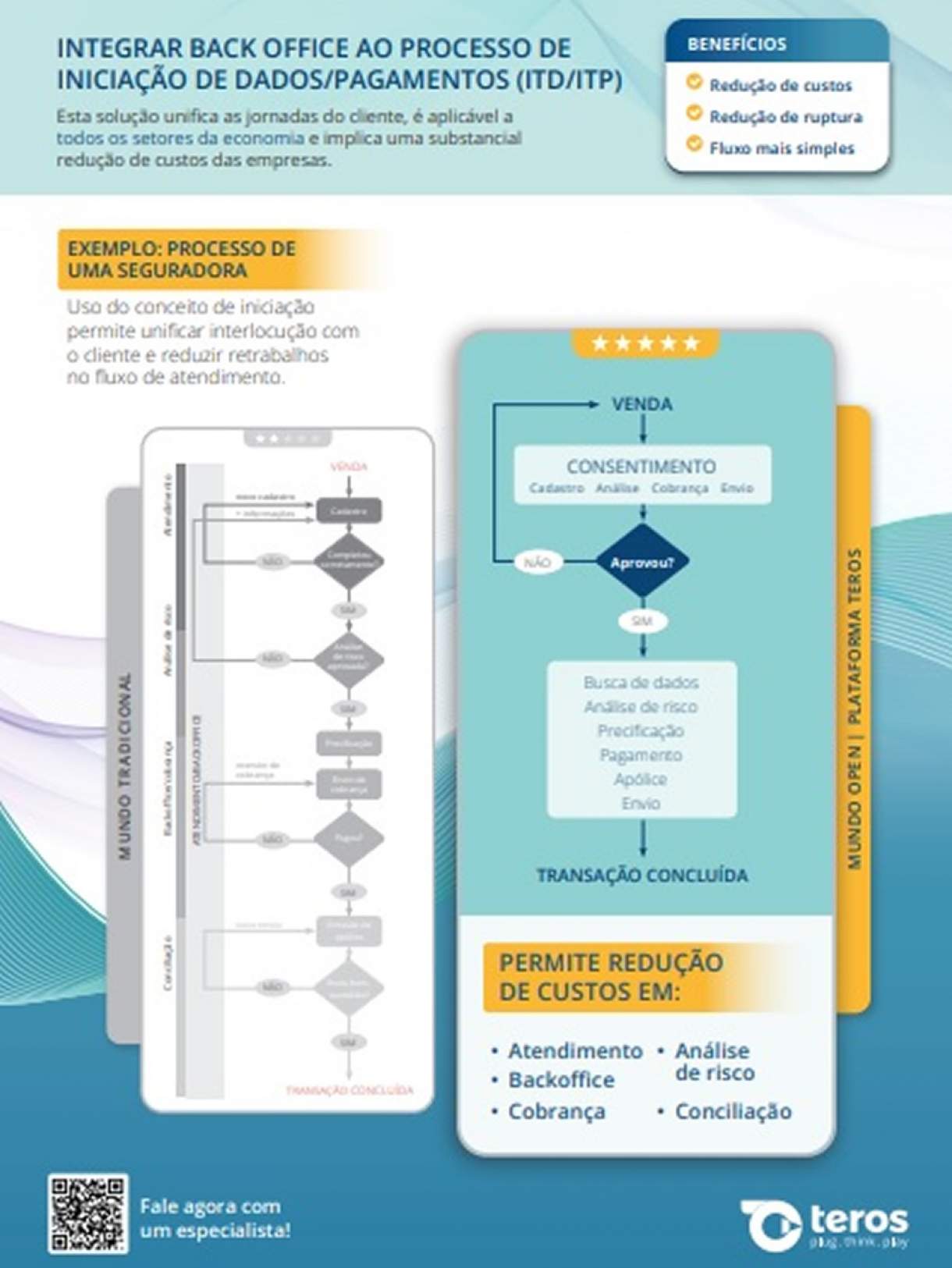 A Teros, empresa especializada em soluções de inteligência de dados, pricing e mundo open, apresenta os benefícios do uso da integração backoffice ao processo de iniciação de dados e pagamentos (ITD/ITP) no Mundo Open para empresas do setor de seguros. O objetivo é proporcionar redução de custos em áreas como atendimento, backoffice, cobrança, análise de risco e conciliação, por meio de uma plataforma ágil.