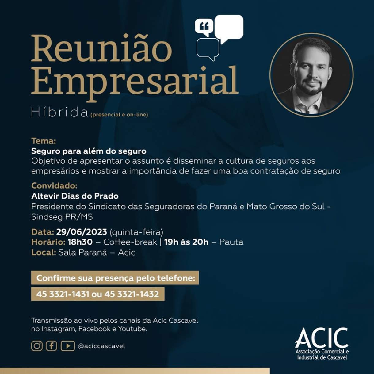 O representante das seguradoras nos dois estados estará em Cascavel nesta quinta-feira (29/06), às 18h30, fazendo uma palestra para empresários na reunião de diretoria da Associação Comercial e Industrial de Cascavel (Acic), entidade com 3,6 mil empresas associadas.