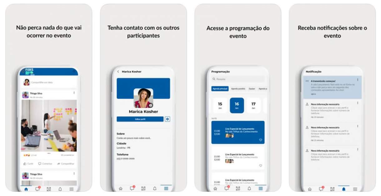 Além de compartilhar textos, fotos e vídeos na timeline, os usuários também poderão trocar mensagens de maneira privada. O app também conta com ícone exclusivo para reuniões com patrocinadores e outros usuários, mini bios sobre os palestrantes, além da programação completa e mapa da FIDES. Por lá, também será possível conferir as principais notícias do setor e do evento.