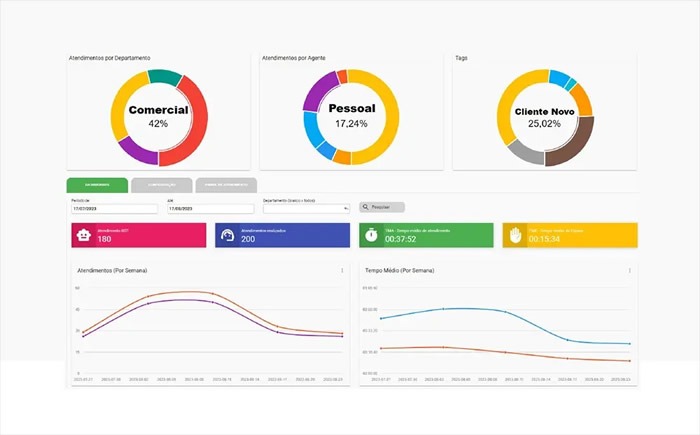 Com base em todo o histórico de conversas e atendimentos realizados, o Quiver Zap é capaz de fornecer dashboards e métricas para que a sua corretora otimize e crie estratégias de atendimento com base em dados de de atendimentos por departamento, por agente, Tempo médio de atendimento (TMA), Tempo médio de Espera (TME) e muito mais!