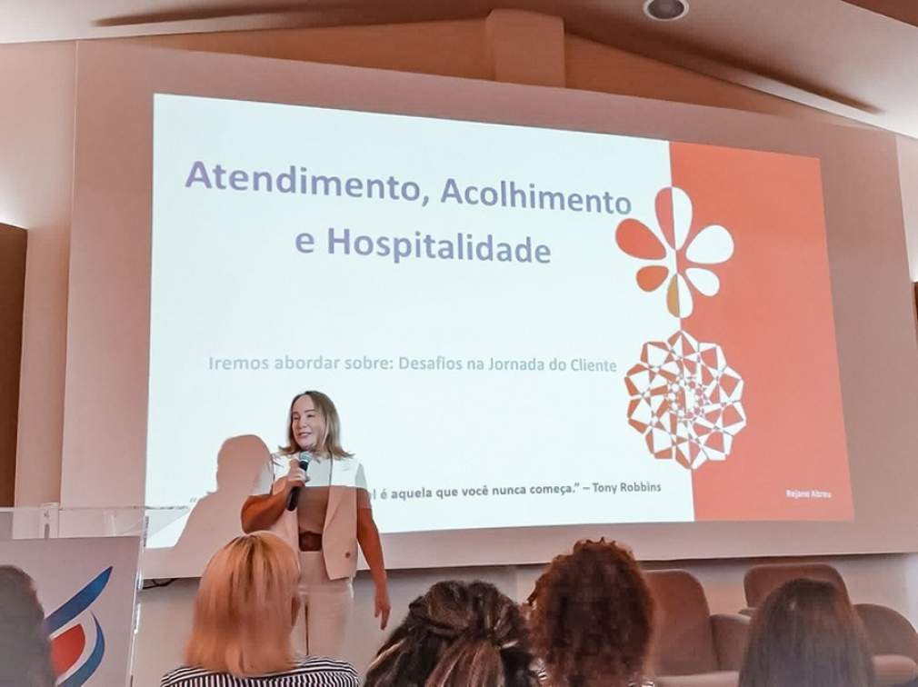 Diretora de Atendimento, Acolhimento e Experiência do Cliente, Rejane Abreu, palestrou diante de uma plateia composta por especialistas na área