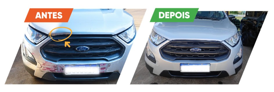 Um Ford Ecosport sofreu uma colisão acidental, resultando em danos na lataria. O reparo feito por uma oficina particular custaria R$900,00. No entanto, utilizando o serviço, o segurado pagou apenas a franquia de R$160,00, resultando em uma economia superior a R$700,00.