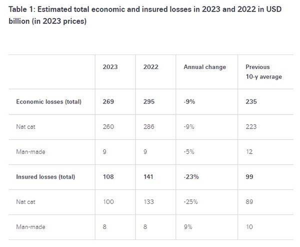 A resseguradora Swiss Re divulgou recentemente um primeiro levantamento dos prejuízos de catástrofes em 2023.