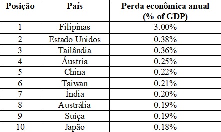 - Atualmente, a economia dos EUA perde quase 0,4% do PIB (USD 97 bilhões), enquanto as Filipinas perdem 3% do PIB (USD 12 bilhões) devido aos quatro perigos meteorológicos, e, ao mesmo tempo, estão expostos à intensificação de riscos no futuro