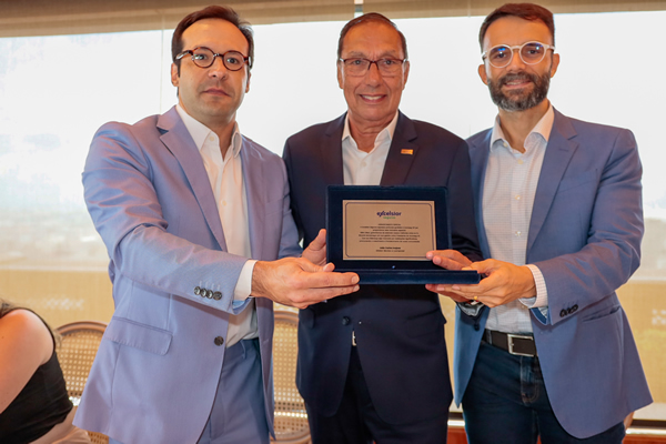 Joao Carlos Inojosa (esq.), Ricardo Montenegro recebe placa da Excelsior e Anderson Peixoto (crédito: Kaoe Silva)