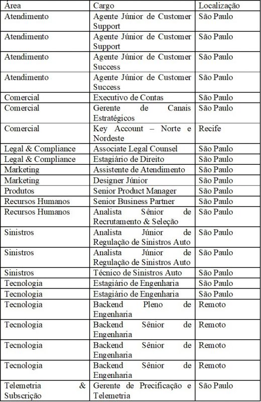 Para saber mais detalhes sobre cada posição, confira as vagas disponíveis na tabela abaixo. Para se candidatar e entender todos os requisitos das posições, basta acessar o site de oportunidades da Darwin Seguros