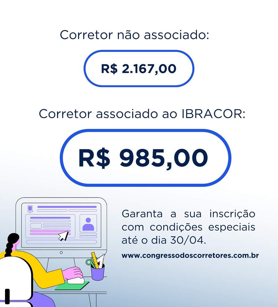 Já a inscrição no Congresso deve ser feita no hotsite do evento, neste endereço eletrônico: https://www.congressodoscorretores.com.br/inscreva-se/