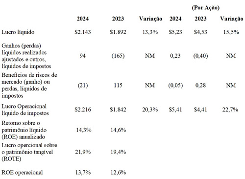 - O lucro líquido foi de US$ 2,14 bilhões, um aumento de 13,3%, e o lucro operacional foi de US$ 2,22 bilhões, com crescimento de 20,3%.