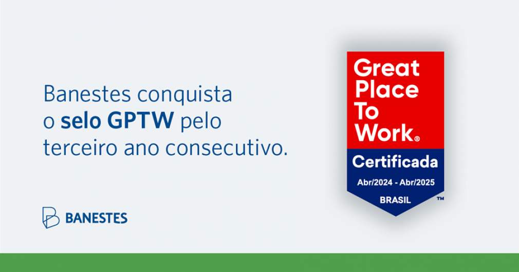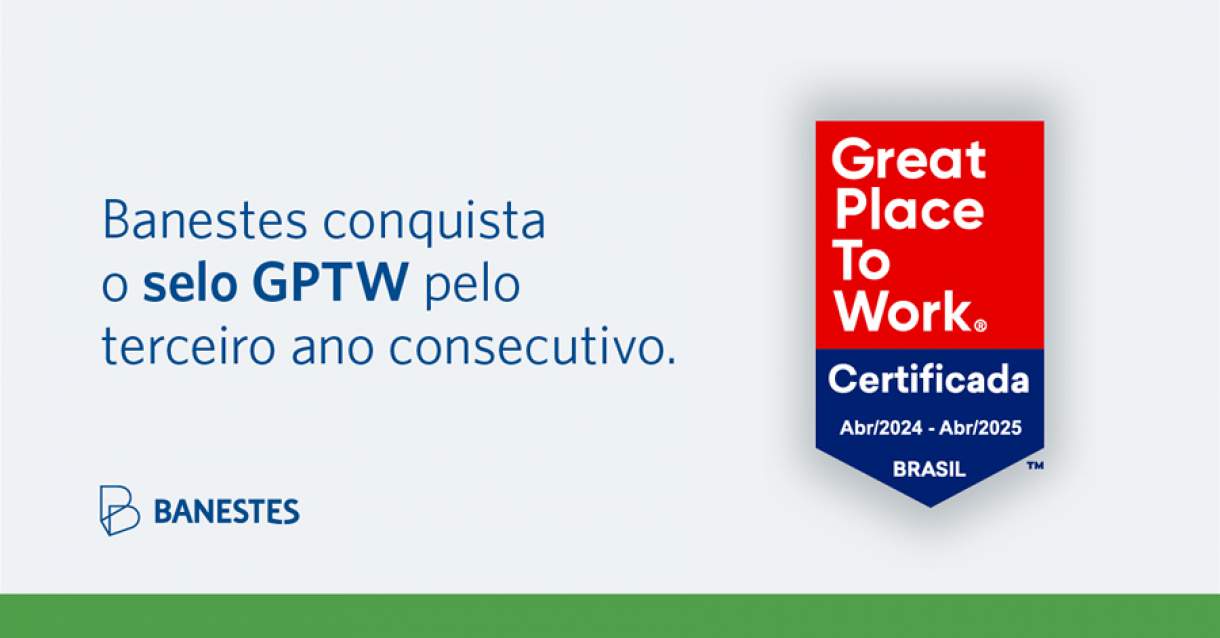O Banco do Estado do Espírito Santo (Banestes) foi certificado, pelo terceiro ano consecutivo, com o selo Great Place to Work (GPTW). Assim, após a avaliação por meio de pesquisa com participação livre dos cerca de 2 mil colaboradores do Sistema Financeiro Banestes, a instituição foi categorizada como uma das melhores empresas para se trabalhar no Brasil.