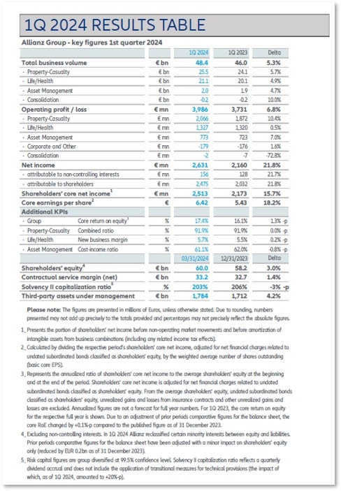 Nota: Esta é uma tradução da divulgação de resultados trimestrais do Grupo Allianz. Em caso de divergências, o original em alemão tem caráter vinculativo.