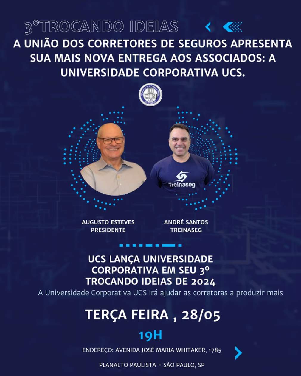 Em seu próximo encontro mensal, o 3º Trocando Ideias de 2024, a União dos Corretores de Seguros apresenta sua mais nova entrega aos associados: a Universidade Corporativa UCS.